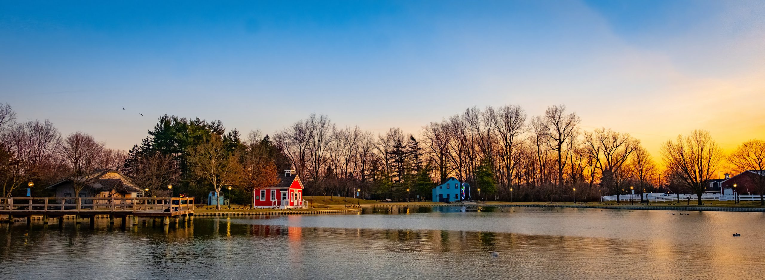 The towering steeple can be seen as one approaches the park. The view from the churches porch overlooks tranquil Coan Lake, which is crossed by a covered bridge and surrounded by historic buildings and replicas, which serve as beautiful backgrounds for photos!