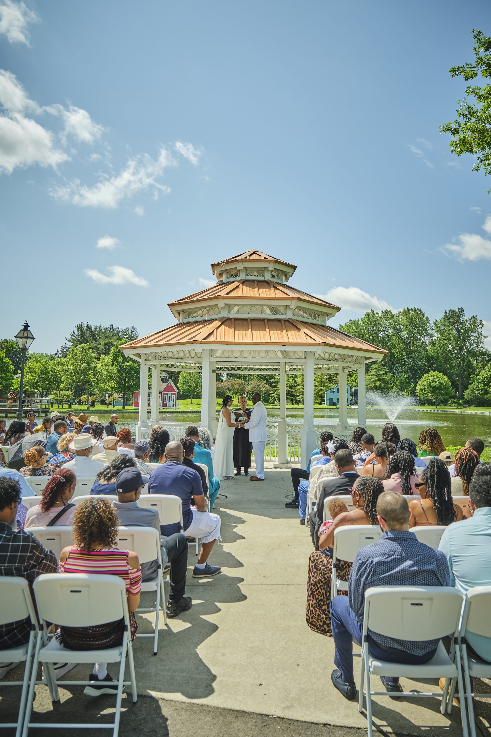 Outdoor weddings are always desirable! If you are looking for a beautiful setting for an outdoor ceremony, our covered gazebo is just the place! Our gazebo sits right next to Coan Lake in Heritage Park. It is an absolutely beautiful setting for your outdoor wedding. The gazebo is large enough to accommodate 25 people inside if you are wanting to do a small, intimate ceremony. If you are expecting more guests, we can provide white chairs for up to 100 guests around the gazebo.